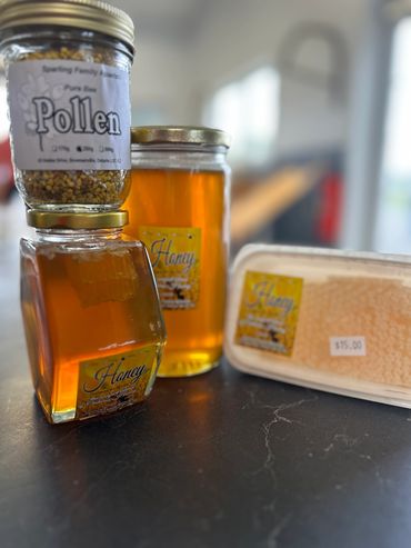 We have a local beekeeper on our farm, and we sell all the honey provided to our customers!
